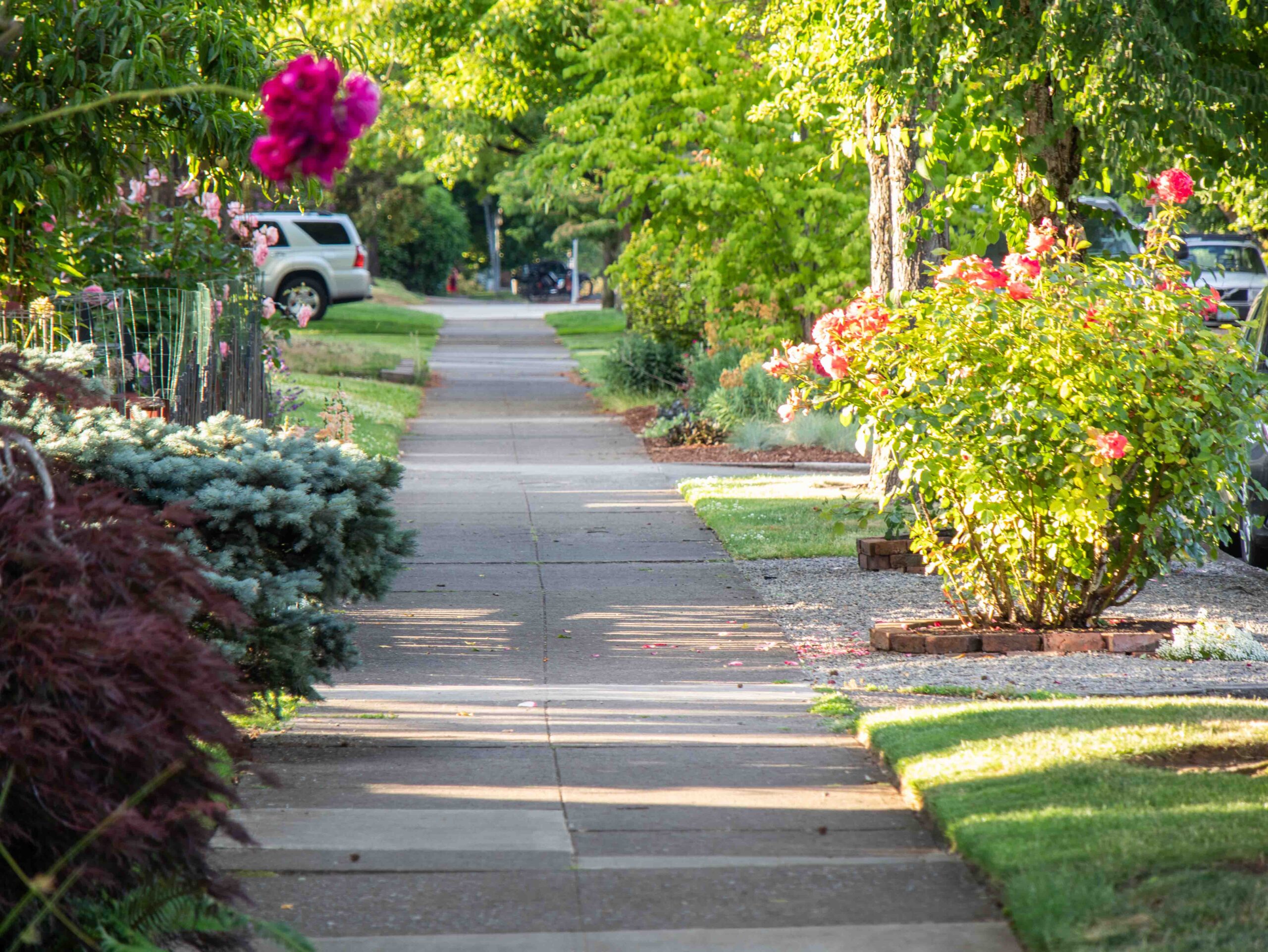 Le sol et le climat de la région facilitant un peu les choses, une balade dans les rues de Portland offre un vrai dépaysement. Il faut tout de même préciser qu’il s’agit des rues des quartiers périphériques au centre ville. Le cœur de la ville n’est pas désagréable, mais la municipalité fait face à un autre problème d’ordre sanitaire (épidémie de Fentanyl),https://www.opb.org/article/2023/05/30/oregon-worsening-drug-crisis-fentanyl-overdoses/