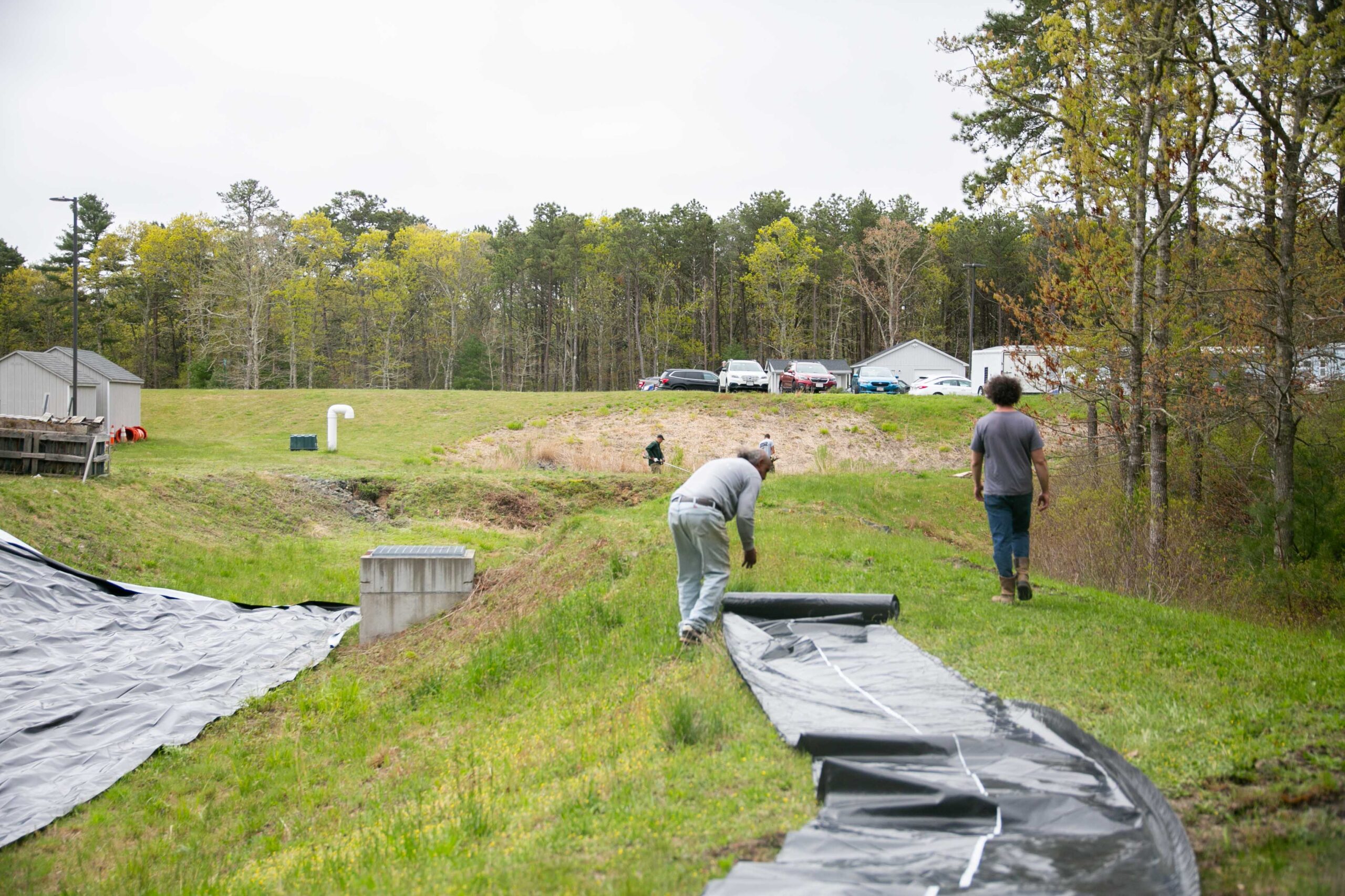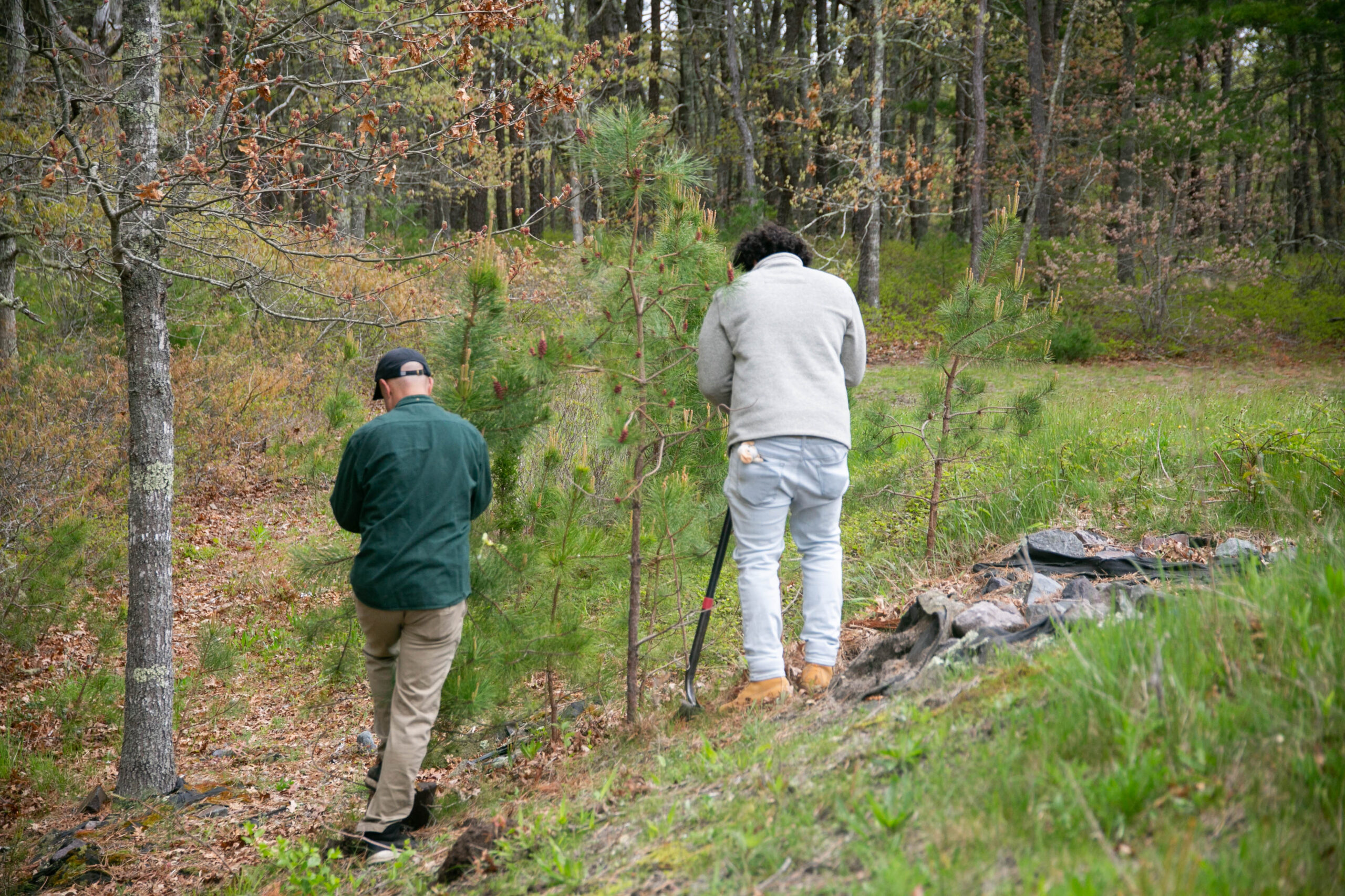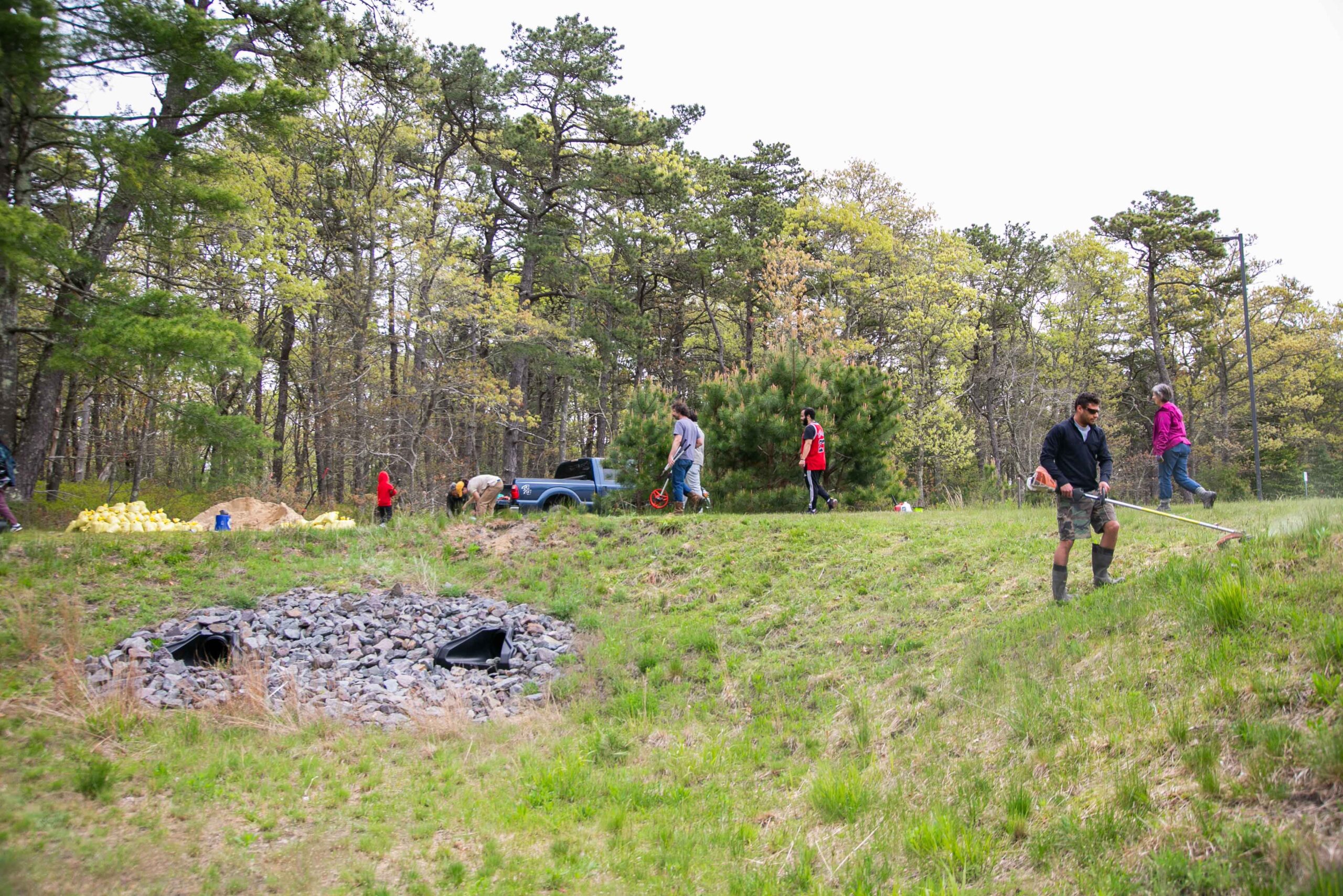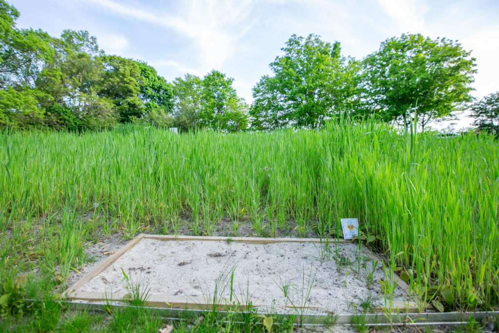 Lors de notre projet « Résilience et adaptation d’un continent à l’autre » en 2024, nous avons pu rencontrer Evan qui nous avait conviés à participer à un chantier avec d’autres volontaires. Le projet en question se situait sur la presqu’ile de Cape Code au sud de Boston. Evan Abramson a été missionné pour aménager un bassin d’orage sur le site de la communauté indienne des Mashpee Wampanoag. Comme beaucoup d’infrastructures publiques, ce site dispose d’un bassin tampon de collecte des eaux pluviales. L’espace était fonctionnel et répondait à l’objectif initial de stocker et de permettre aux eaux de ruissellement de s’infiltrer. Pour aller plus loin et augmenter les services écosystémiques de ce bassin, Evan a proposé de le planter avec un cortège de plantes locales dans le but de recréer un biotope favorable aux insectes pollinisateurs.