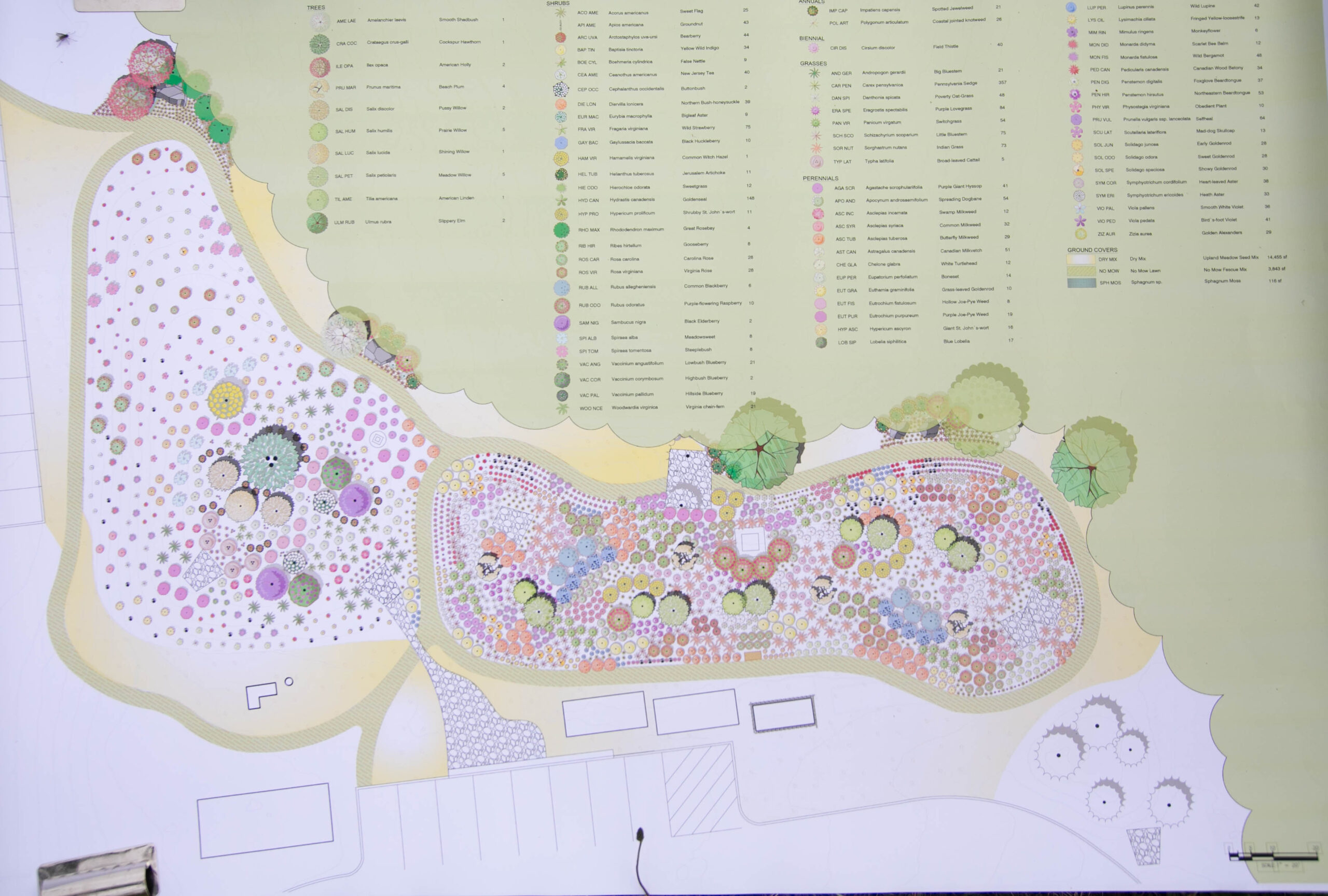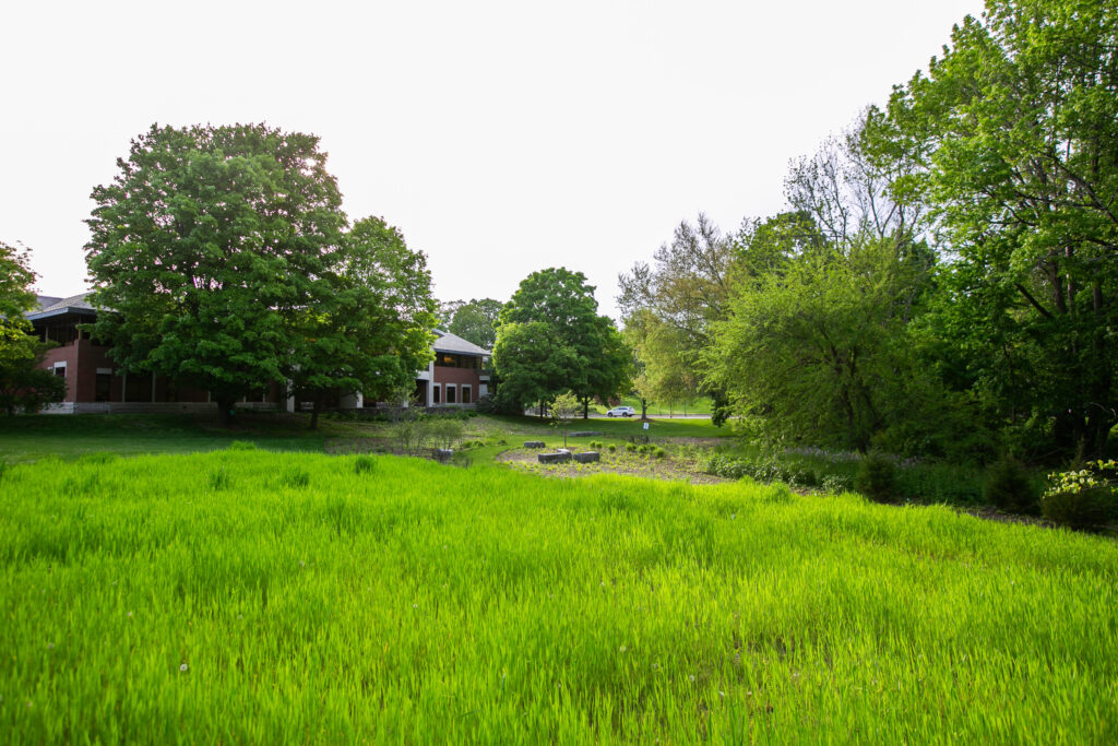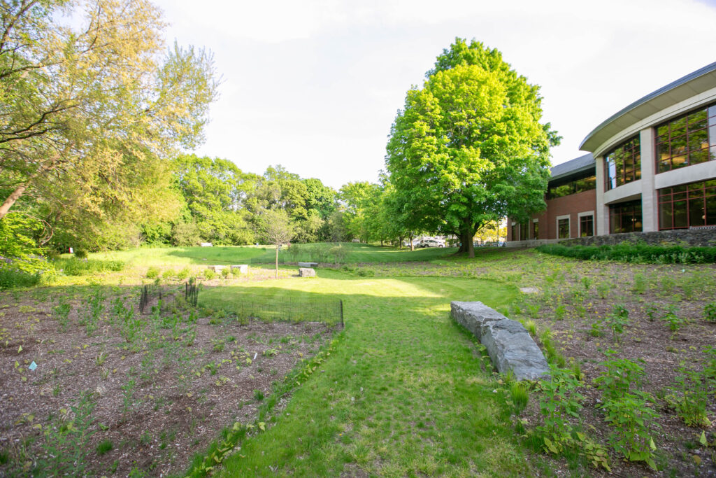Non loin d’où nous avons séjourné, un autre projet de Landscape Interaction était visible. Dans la ville de Wellesley, autour de la bibliothèque, une grande partie des pelouses a été transformée en massifs de plantes vivaces pouvant accueillir une plus grande diversité d’insectes et de pollinisateurs notamment.